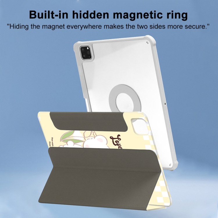 2. Diseño especial: la cubierta magnética desmontable puede mantener su pantalla cubierta, plegarla en un soporte con modos de visualización, escritura y retrato.Múltiples ángulos de soporte como mirar, leer y escribir ángulos.La parte posterior de TPU con imán fuerte se puede unir fácilmente a superficies de acero como refrigeradores y pizarras blancas.Aporta una comodidad más increíble a tu vida, como estudiar, hacer yoga, cocinar y bañarte.