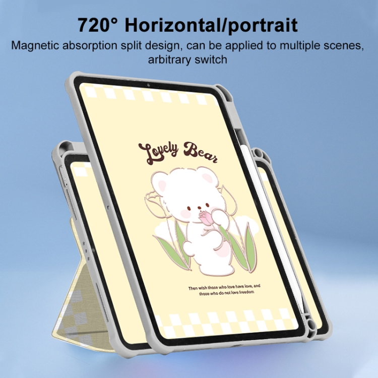 Funda Tableta Inteligente para iPad 10.2 2021/2020 y 10.5 720 Cuero Pintado Magnético con Rotación (Oso Crema)