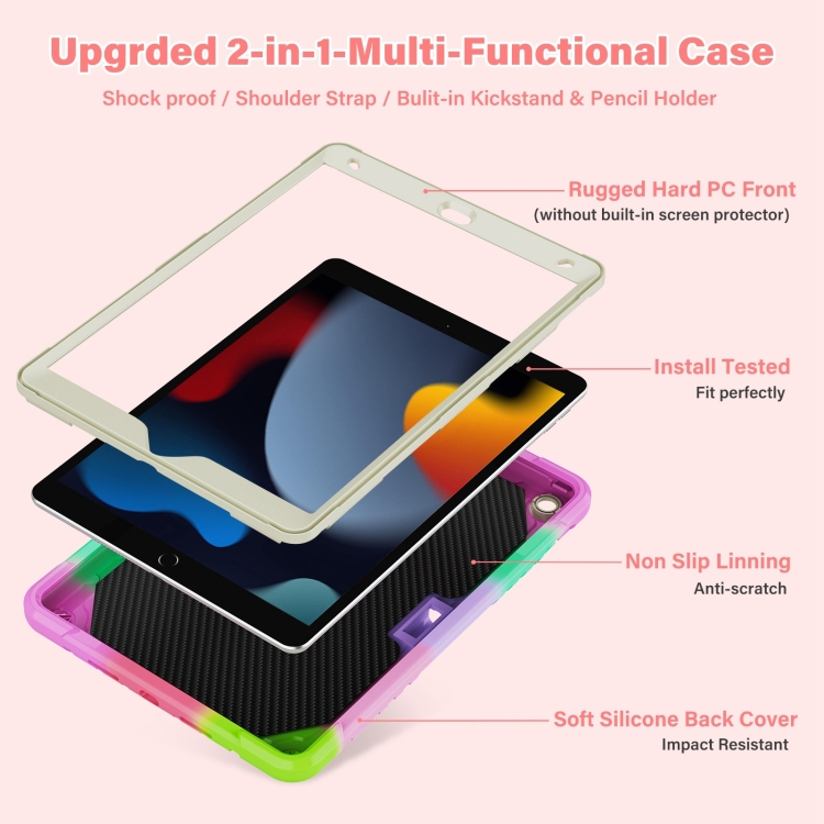 1. Protección resistente: combina una capa posterior de silicona premium a prueba de golpes con un marco frontal de PC duro, bueno para los niños y resiste caídas accidentales, golpes y golpes.