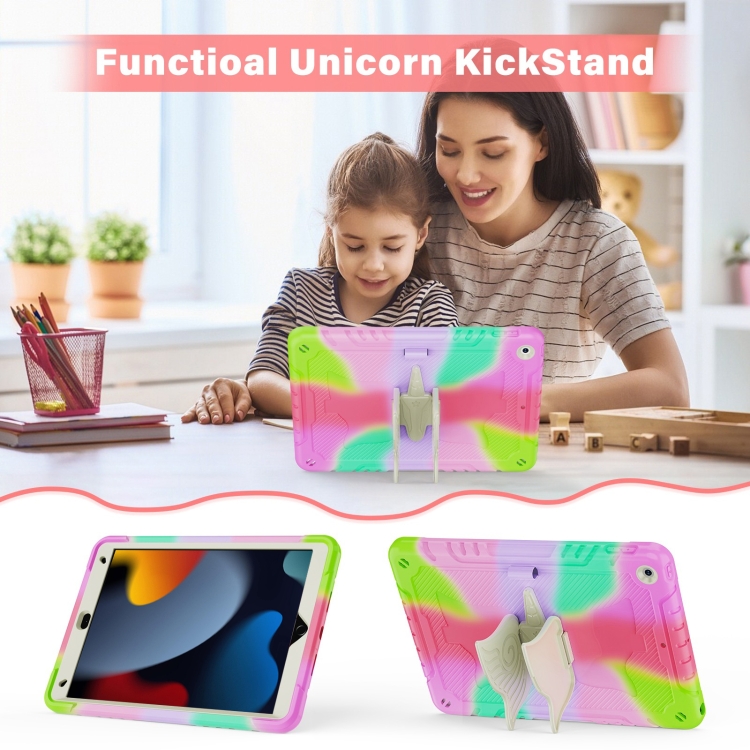 Funda para Tableta iPad 10.2 2021/2020/2019 Unicorn Kickstand Silicona Híbrida (Colorido Rosa Rojo)