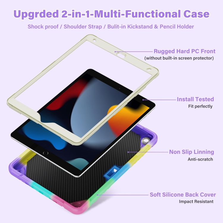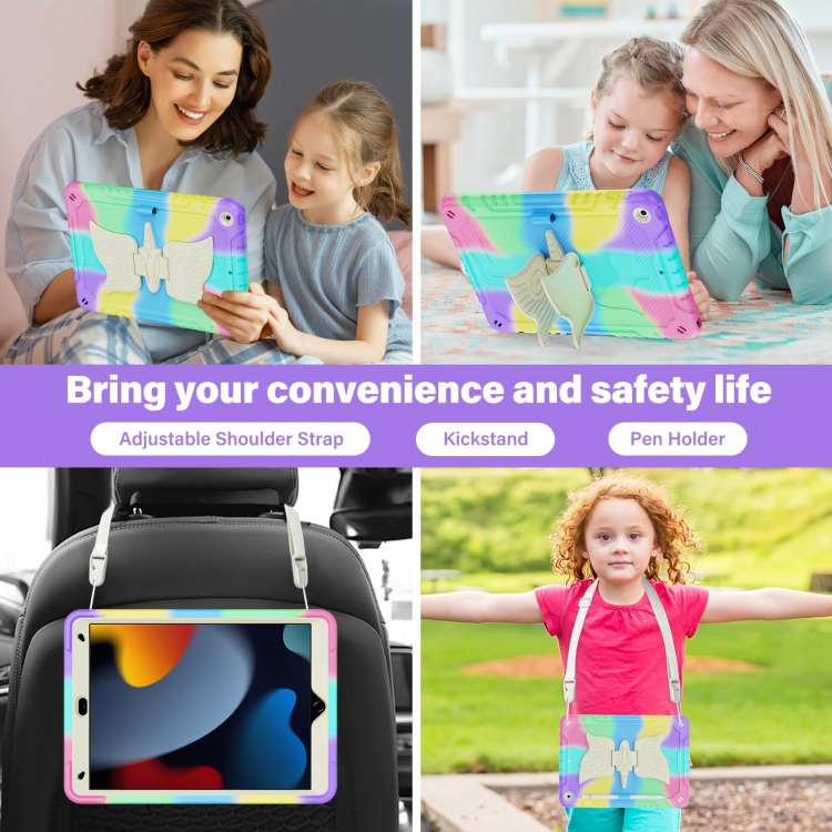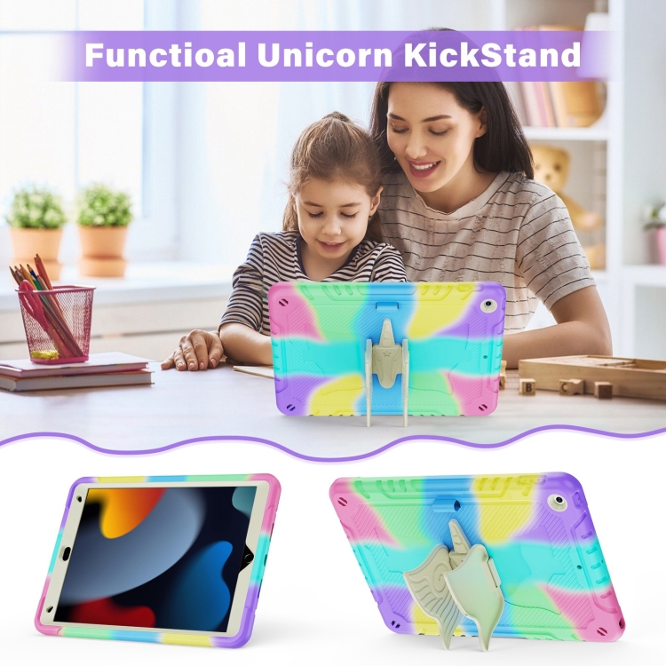 Funda para Tableta iPad 10.2 2021/2020/2019 Unicorn Kickstand Silicona Híbrida (Púrpura Colorido)