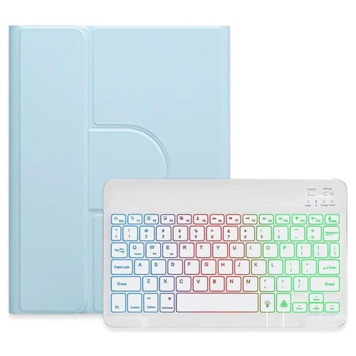Funda de cuero con teclado Bluetooth para iPad 10th Gen 10.9 2022 retroiluminación tres colores giratoria 360 grados (Azul Cielo)
