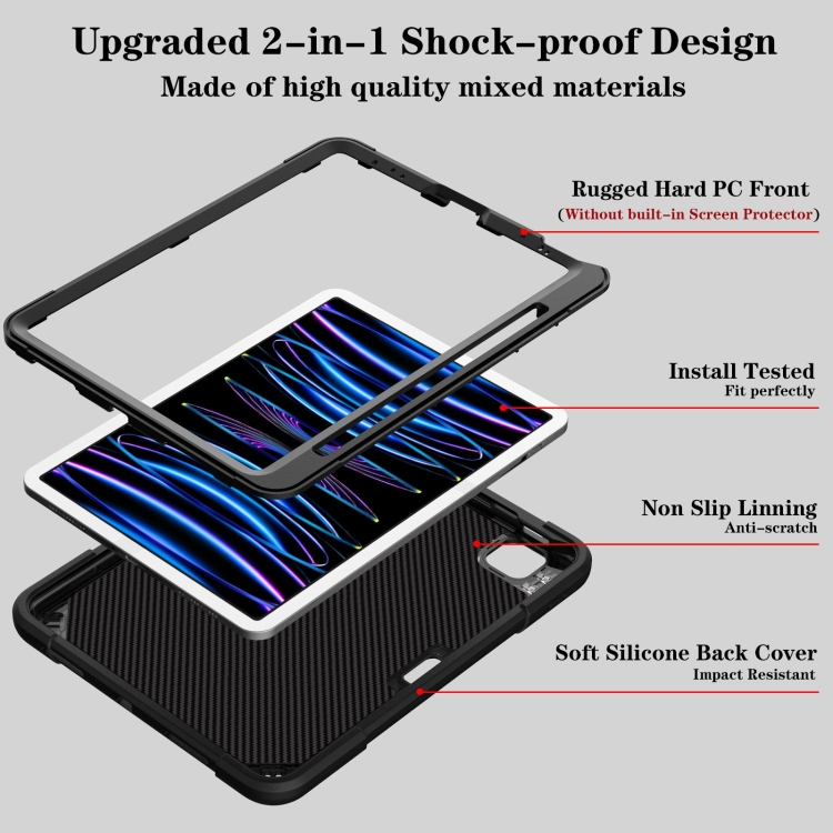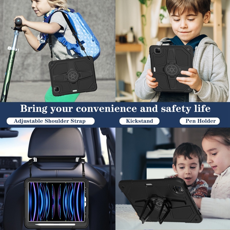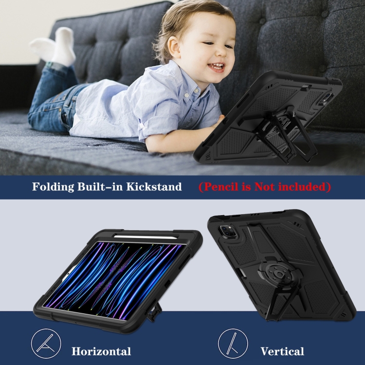 Funda para Tableta iPad Air 2022 10.9 Pro 11 2022 Silicona Híbrida Soporte y Correa (Negro)