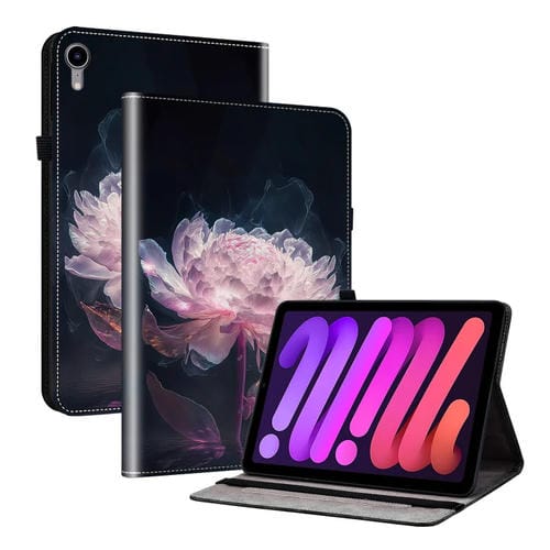 Funda para Tableta iPad Mini 6 Cuero Pintado Textura de Cristal (Peonía Púrpura)