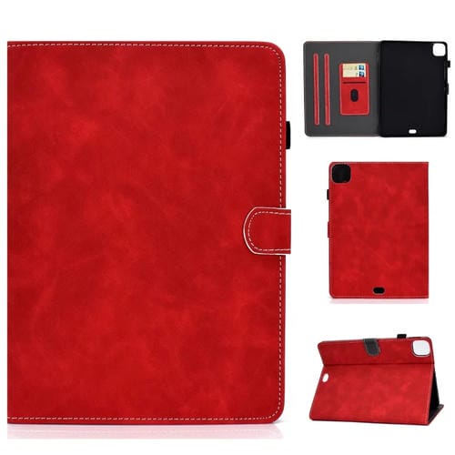 Funda Inteligente de Cuero para iPad Pro 11 (2024) Textura Piel de Vaca (Roja)