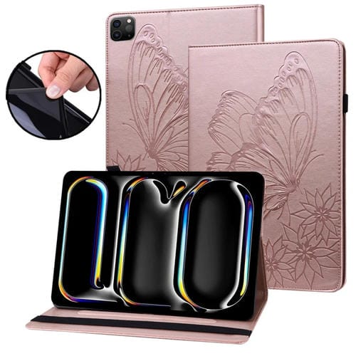 Funda de Piel con Relieve de Mariposa Grande para iPad Pro 11 (2024) (Oro Rosa)