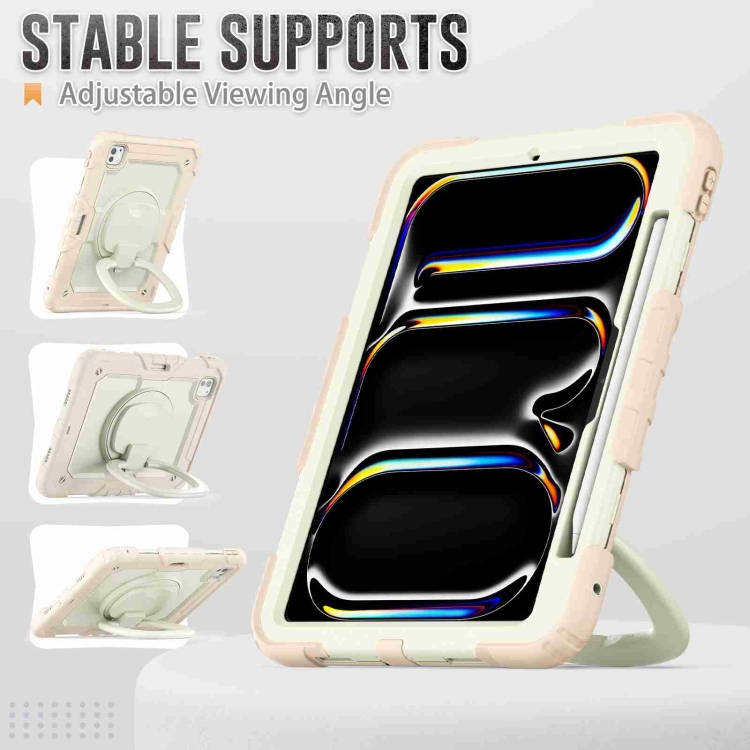 Funda de Silicona Hidrófuga para iPad Pro 11 (2024) con Correa para el Hombro (Beige y Oro Rosa)