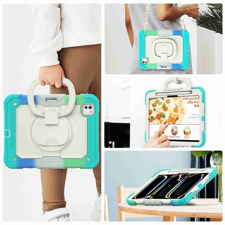 Funda de Silicona Hídrica para iPad Pro 11 (2024) con Correa para el Hombro (Azul Claro Camuflaje)