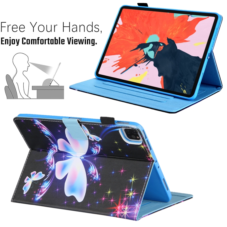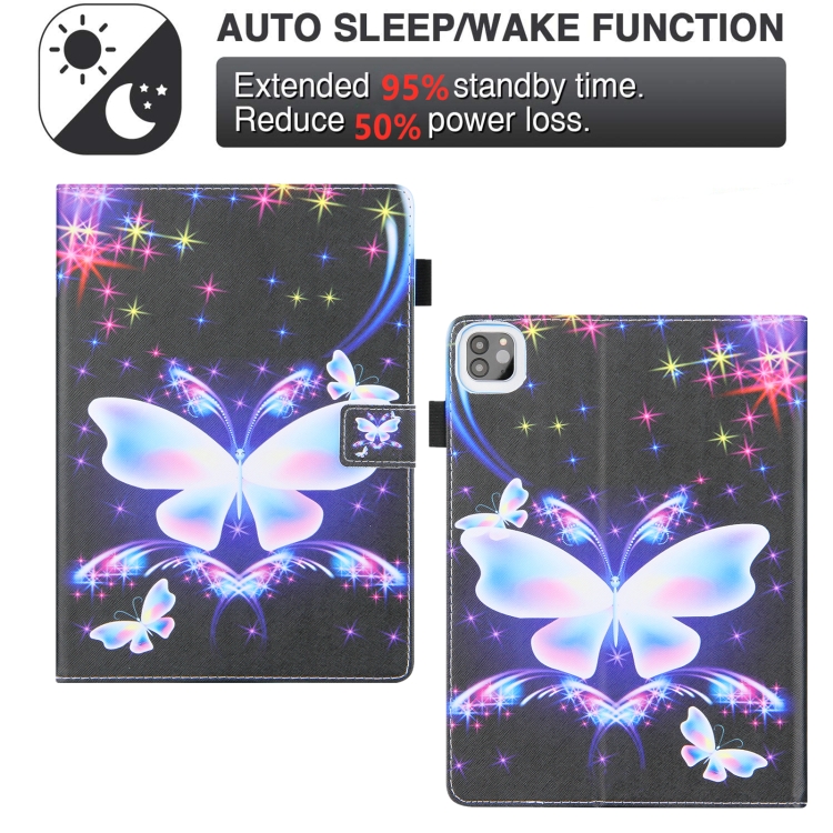 Funda de Cuero para iPad Pro 11 (2024) con Diseño de Mariposas de Colores