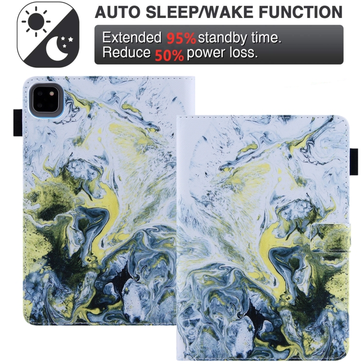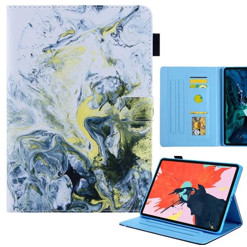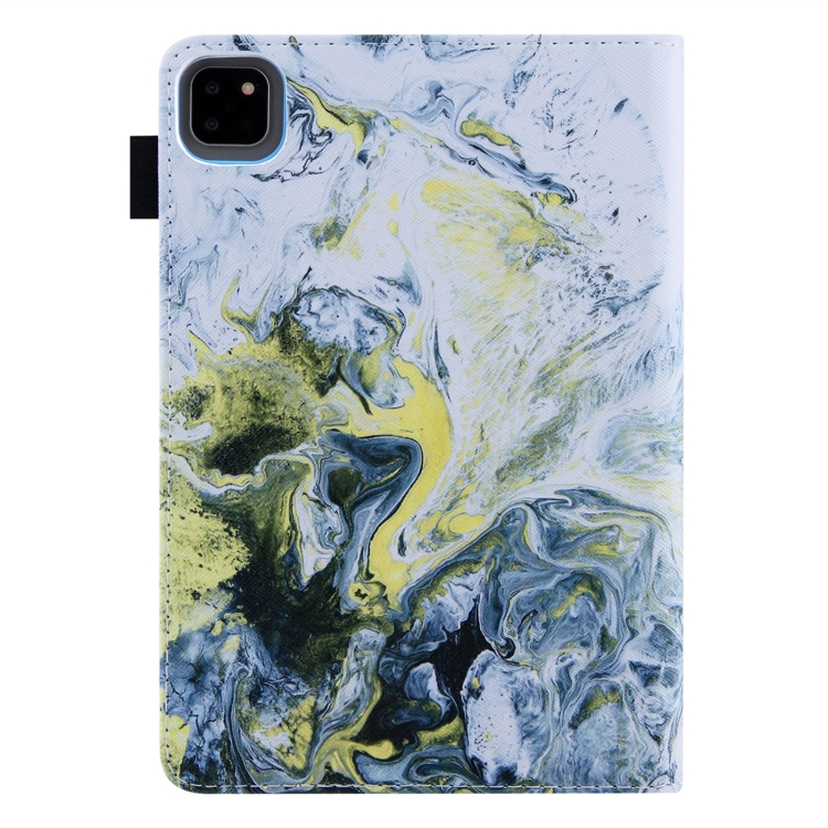 Funda de Cuero para iPad Pro 11 (2024) con Dibujo a Color Mármol Blanco y Dorado