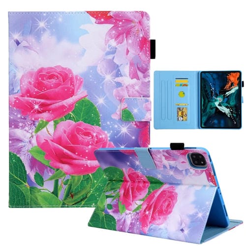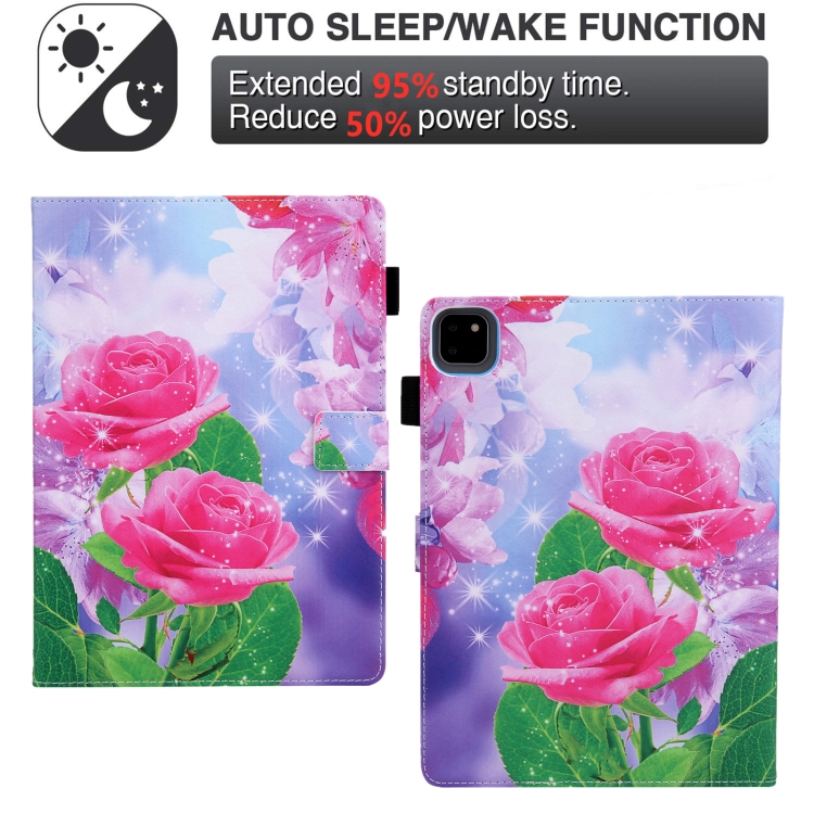 Funda de Cuero para iPad Pro 11 (2024) con Dibujo a Color (Rosa Roja)