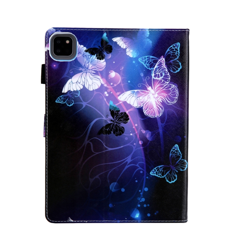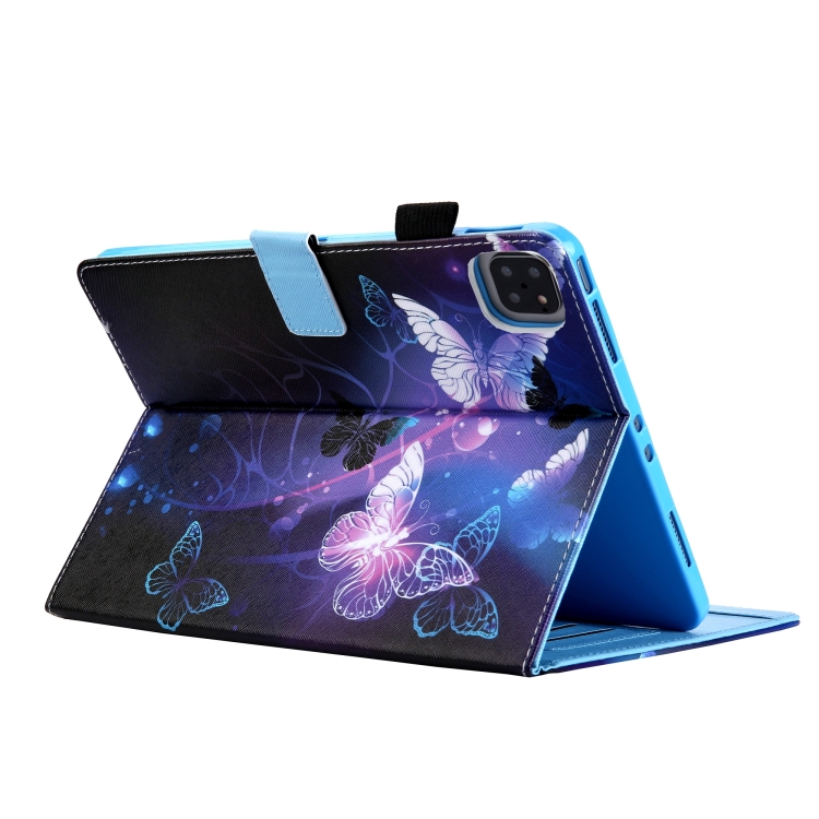 Funda para iPad Pro 11 2024 de Cuero con Dibujo a Color (Mariposas Moradas)