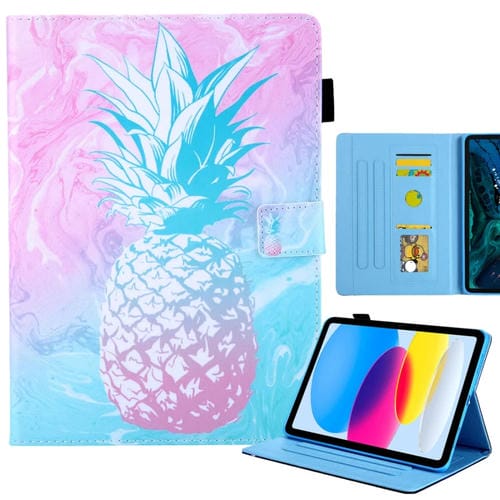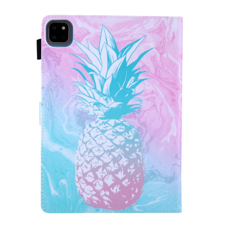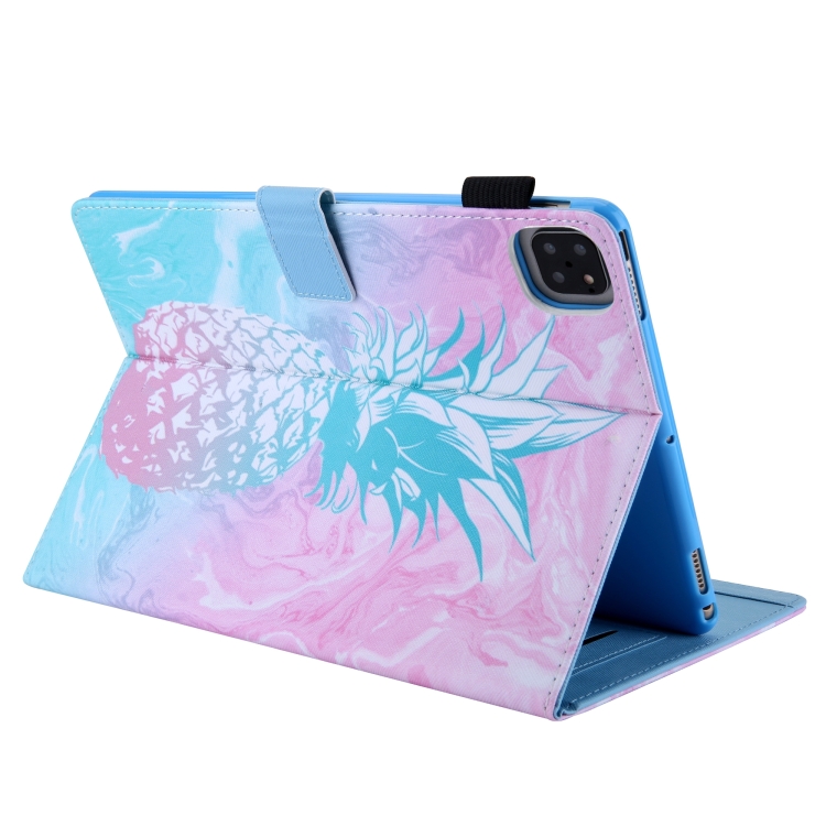 Funda de Cuero para iPad Pro 11 (2024) con Dibujo a Color Piña Azul y Rosa