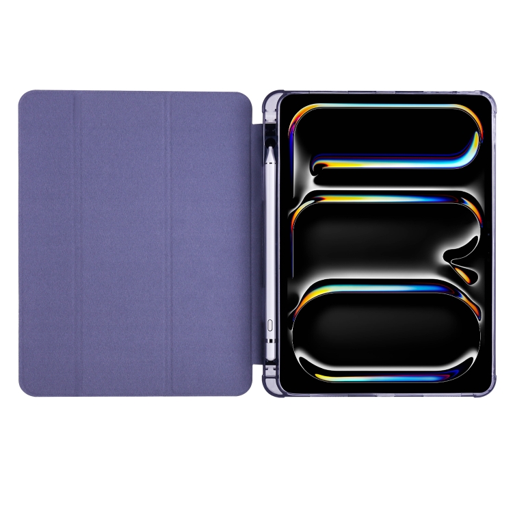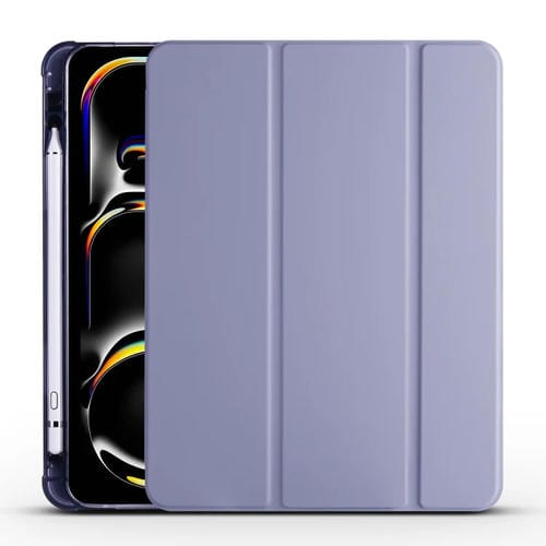 Funda Inteligente de Cuero TPU para iPad Pro 11 (2024) con 3 Pliegues y Ranura para Bolígrafo (Morado Lavanda)