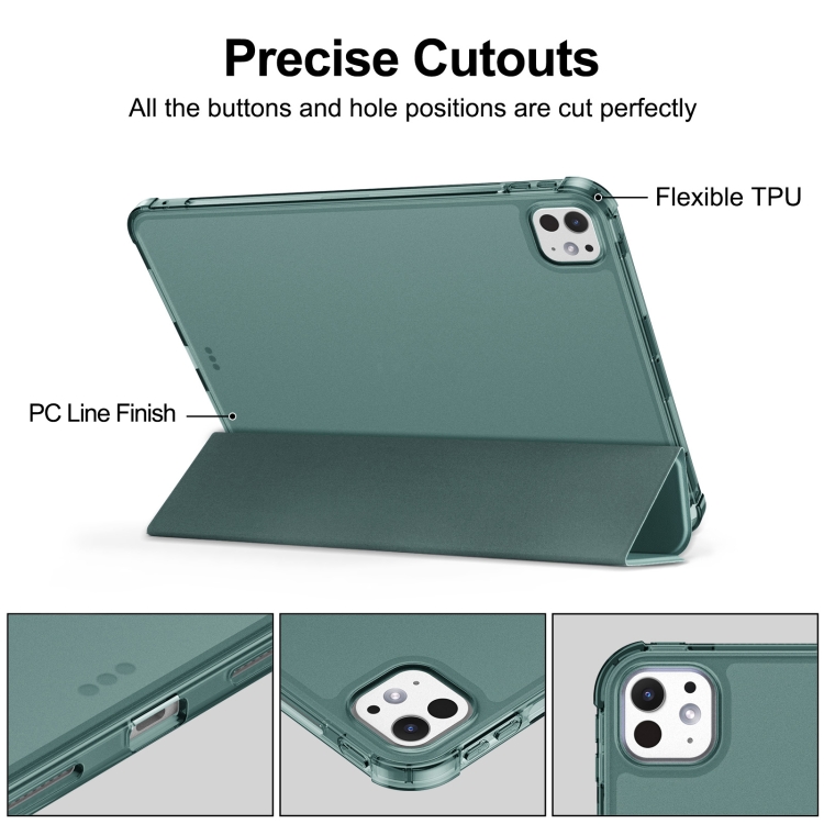Funda TPU para iPad Pro 11 (2024) Cuero Esmerilado con Ranura para Bolígrafo (Verde Oscuro)