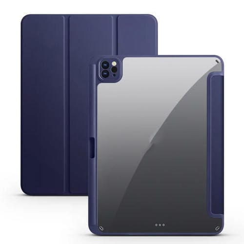 Estuche de Tableta iPad Pro 12.9 Cuero Inteligente 3 Pliegues Acrílico (Azul Oscuro)