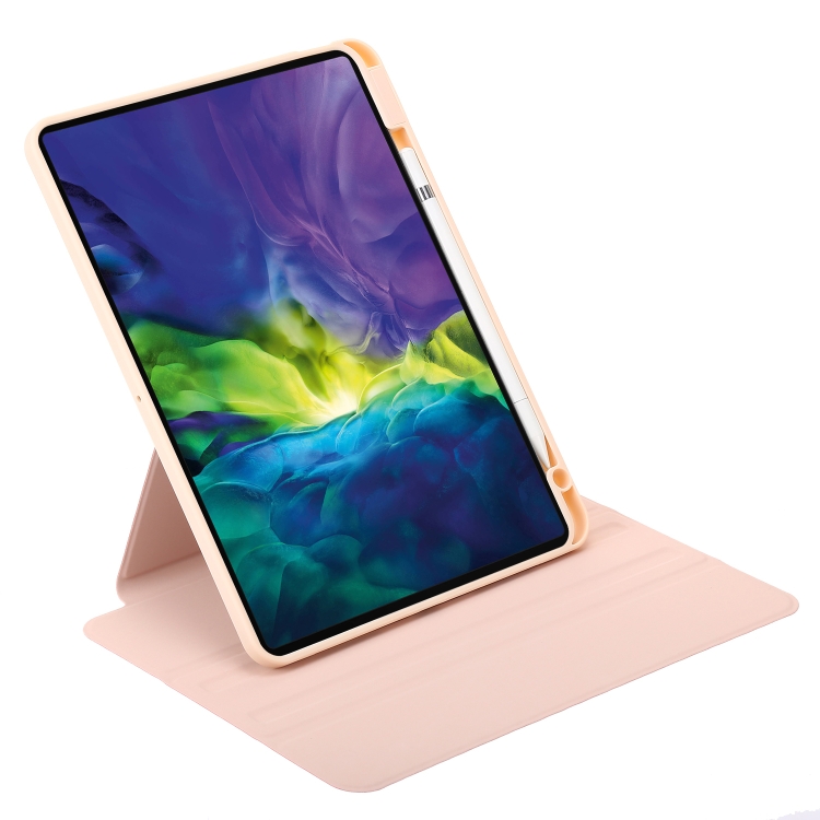 Estuche para Tableta iPad Pro 12.9 2022/2021/2020/2018 Cuero Acrílico Rotación 360° 3 Pliegues (Rosa)
