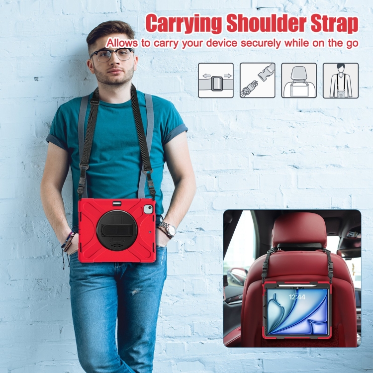 Funda Protectora para Tableta iPad Pro 12.9 Silicona + PC Soporte y Correa para El Hombro (Rojo)