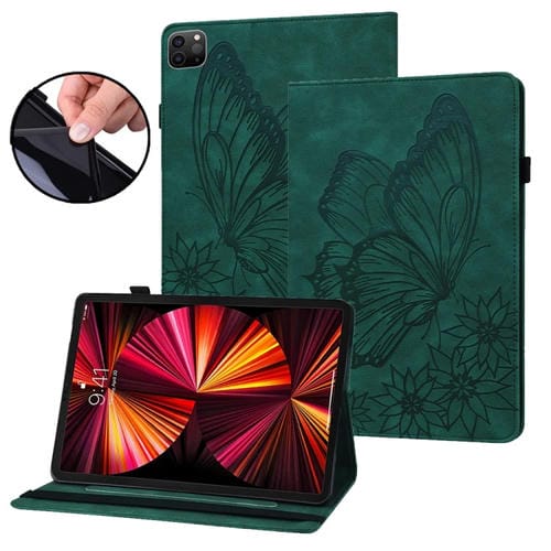 Funda para Tableta iPad Pro 12.9 2022/2021/2020 Cuero Relieve Mariposa Grande (Verde)