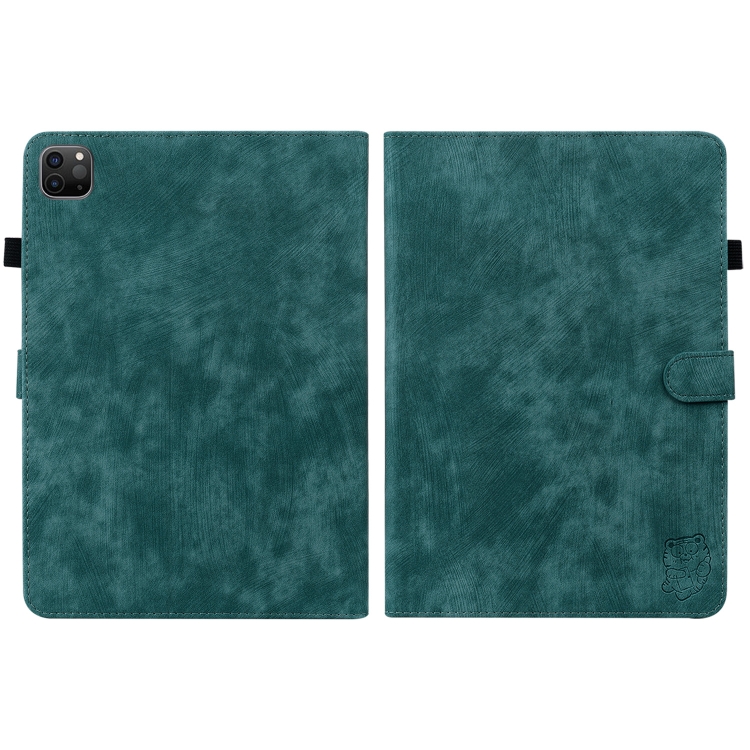 Funda para Tableta iPad Pro 12.9 Tiger Pattern PU con Función de Suspensión Activación (Verde Oscuro)