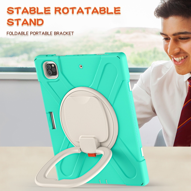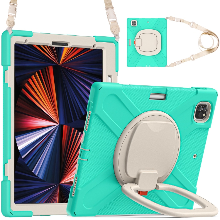 Funda Protectora Silicona + PC para iPad Pro 12.9 2022 / 2021 con Soporte y Correa (Verde Menta)