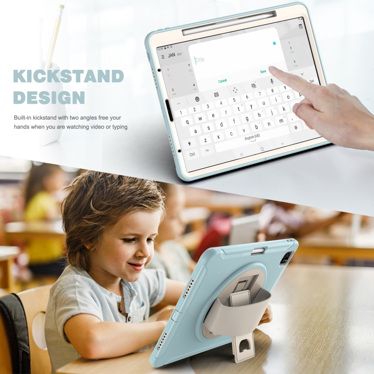 Funda Protectora para Tableta iPad Pro 12.9 2022/2021 Rotación 360° PC TPU Soporte Correa (Azul Hielo)
