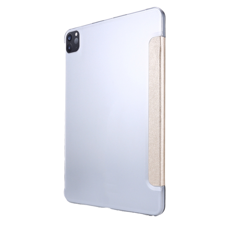 Estuche para Tableta iPad Pro 12.9 (2022 / 2021) Cuero Textura de Seda Tapa Horizontal Tres Pliegues Soporte Ranura para Bolígrafo (Oro)