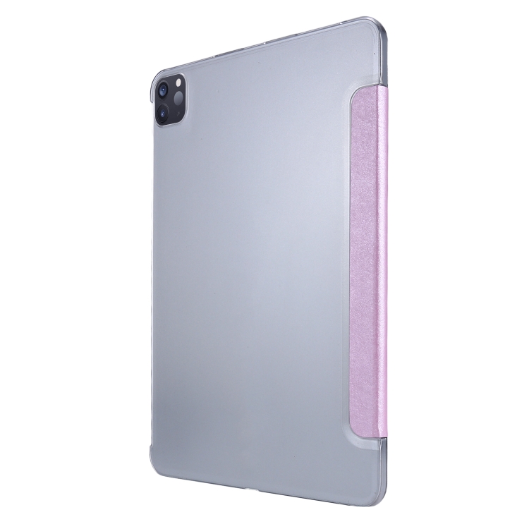 Estuche para Tableta iPad Pro 12.9 2022/2021 Cuero Textura de Seda con Tapa Horizontal de Tres Pliegues Soporte y Ranura para Bolígrafo (Rosa)