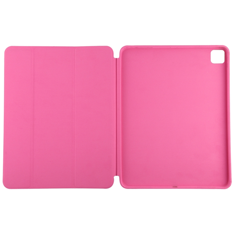 Funda de Tableta Cuero Inteligente para iPad Pro 12.9 (2020/2021) Horizontal Flip 3 Veces con Suspensión y Despertador (Rosa Roja)