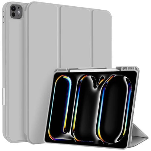 Funda para Tableta iPad Pro 13 2024 Cuero Inteligente TPU 3 Pliegues con Ranura para Bolígrafo (Gris)