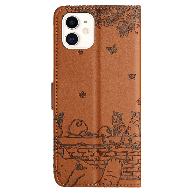 Funda para Teléfono iPhone 11 Cat Relieve Patrón de Cuero con Cordón (Marrón)