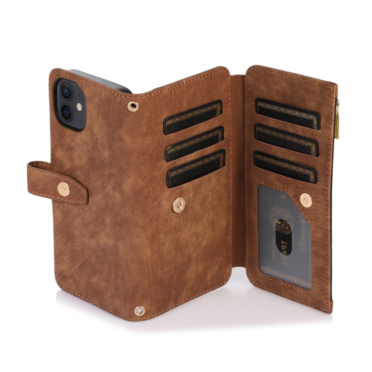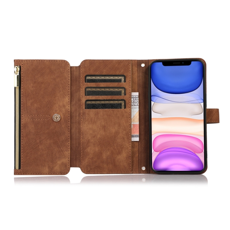 Funda de Cuero para Teléfono iPhone 11 Dream 9-Card Wallet Zipper Bag (Marrón)