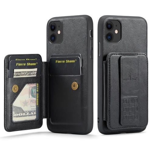 Funda para Teléfono Fierre Shann iPhone 11 Oil Wax con Tarjetero de Cuero de Vaca (Negro)
