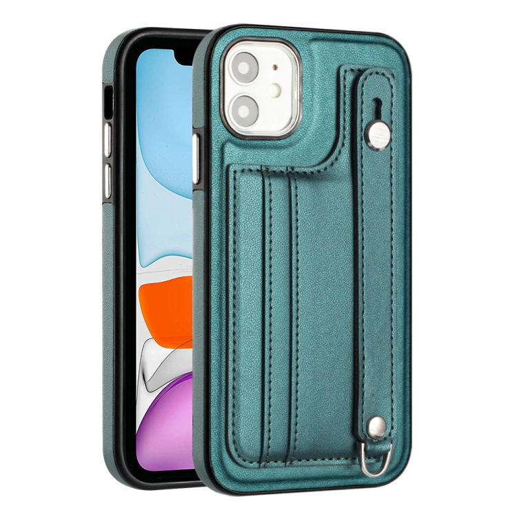 Funda de Teléfono iPhone 11 Cuero a Prueba de Golpes con Correa para la Muñeca (Verde)