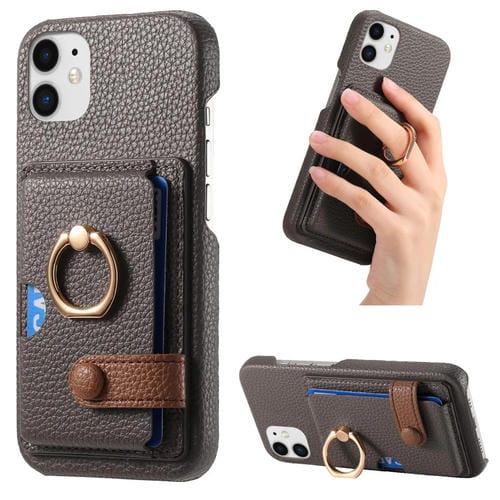 Funda para Teléfono iPhone 11 Borde de Aceite Cuero Litchi Anillo Trasero Tarjeta (Gris)