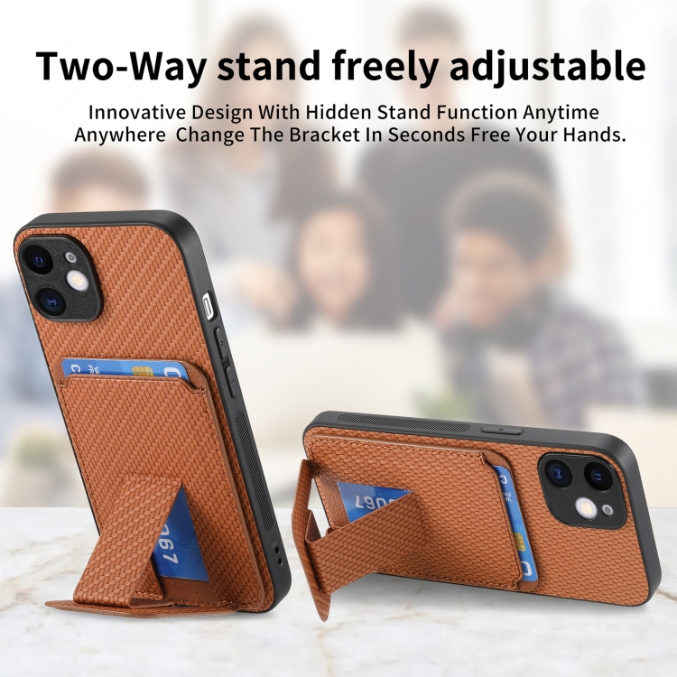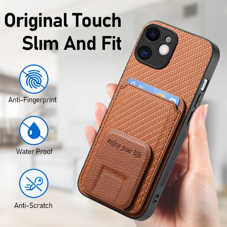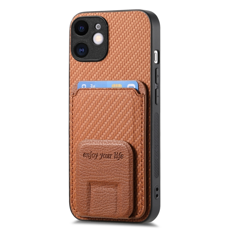 Funda para Teléfono iPhone 11 con Soporte Plegable y Bolsa para Tarjetas Fibra de Carbono (Marrón)