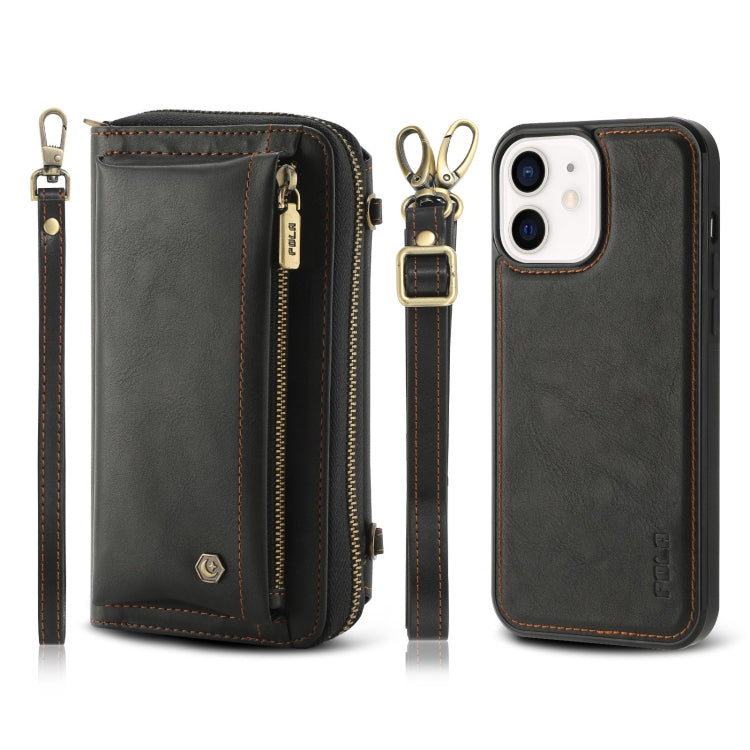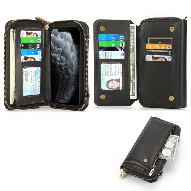 Funda para Teléfono iPhone 11 Cuero con Billetera y Cremallera Multifuncional Cruzada (Negro)