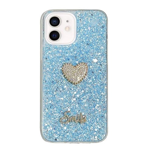 Funda para Teléfono TPU Epoxi iPhone 11 Corazón de Diamante Lentejuelas Estrelladas (Azul)