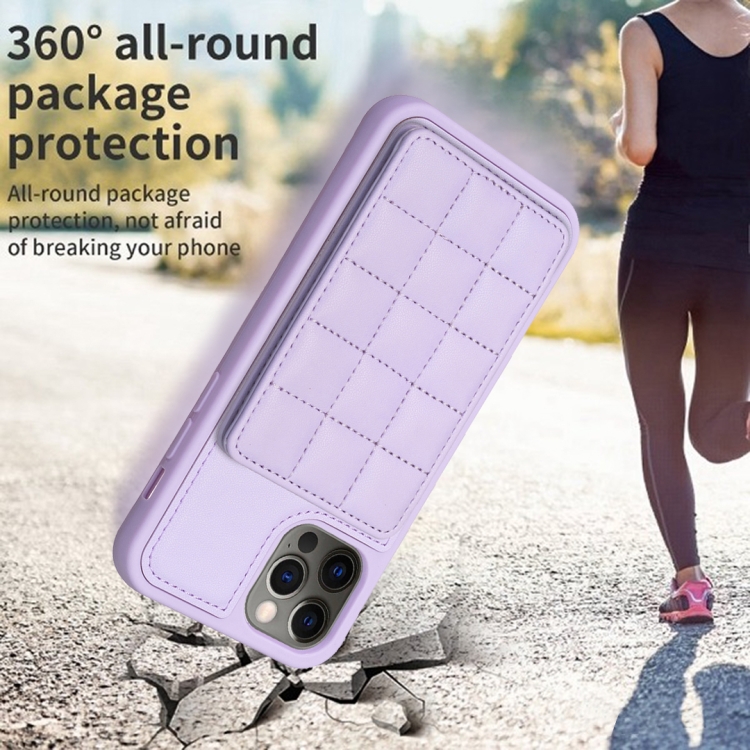 Funda para teléfono iPhone 11 Grid Card Slot Holder (Púrpura Claro)