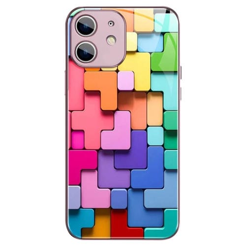 Caja de teléfono para iPhone 11 Patrón de Ladrillos de Juguete Colorido Vidrio a Prueba de Golpes (Rosa)