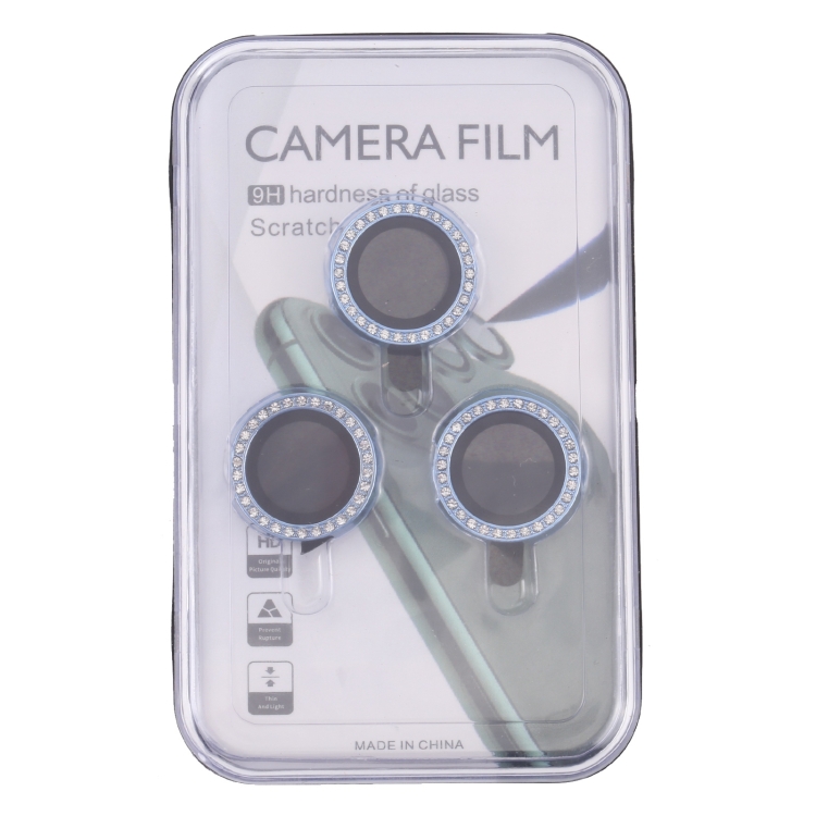 Protector de Lente de Cámara para iPhone 11 Pro 11 Pro Max 12 Pro 9H Point Drill (Azul)