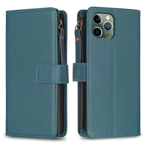 Funda Cartera para iPhone 11 Pro 9 Ranuras para Tarjetas Cremallera Cuero con Tapa (Verde)