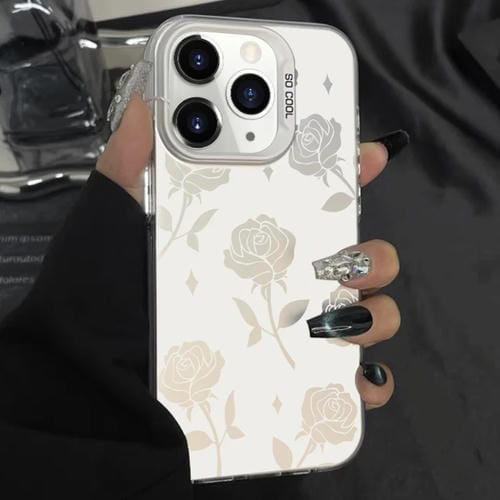 Caja de teléfono híbrida TPU PC para iPhone 11 Pro con pintura plateada (Blanco Rosa Hueco)