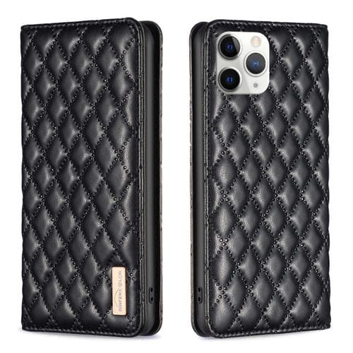 Funda de teléfono para iPhone 11 Pro Diamond Lattice con tapa de cuero magnético (Negro)
