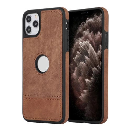For iPhone 11 Pro Splicing Stitching PU Phone Case with Hollow Cutout (Brown)