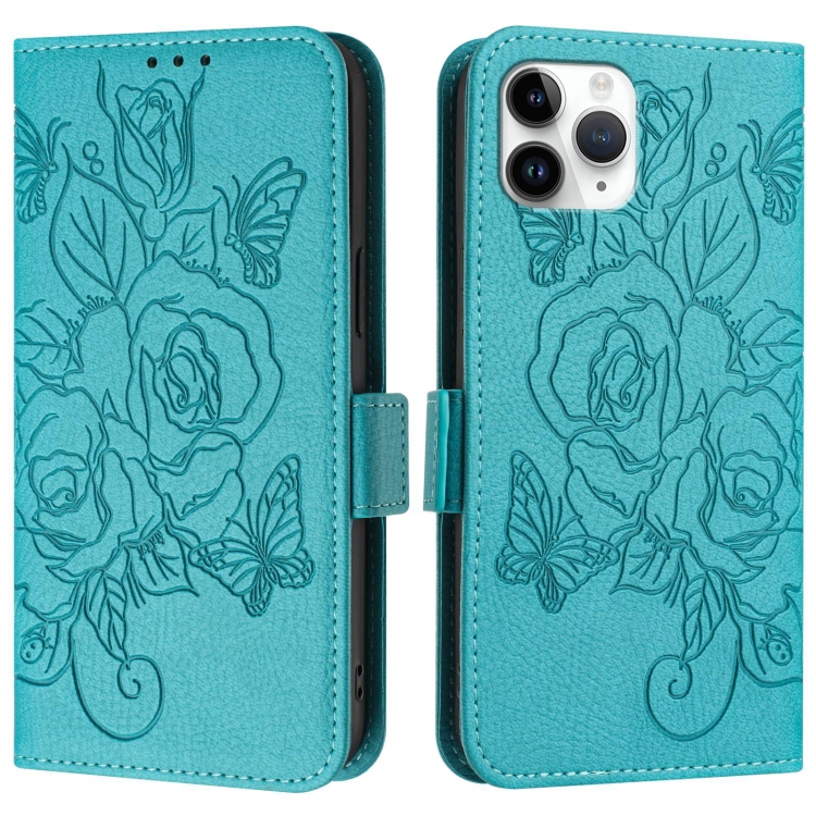 Estuche para Teléfono iPhone 11 Pro Cuero Antirrobo Rfid Rosa en Relieve (Azul Claro)