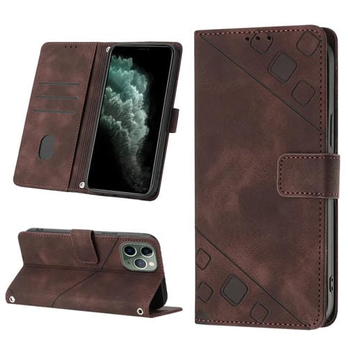 Estuche para Teléfono iPhone 11 Pro Cuero En Relieve con Tacto de Piel (Marrón)