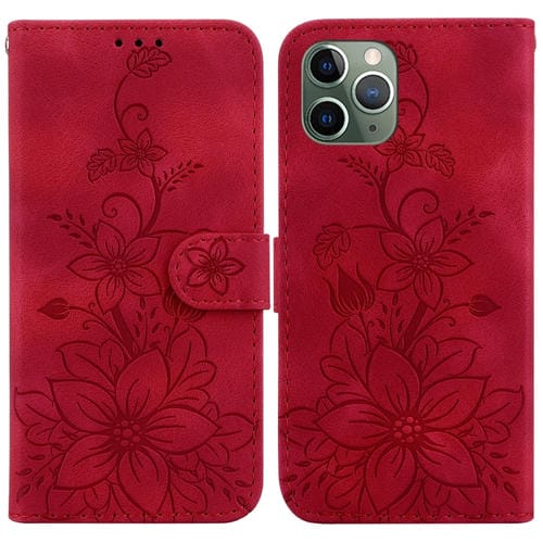 Estuche para teléfono iPhone 11 Pro de cuero en relieve Lily (Rojo)