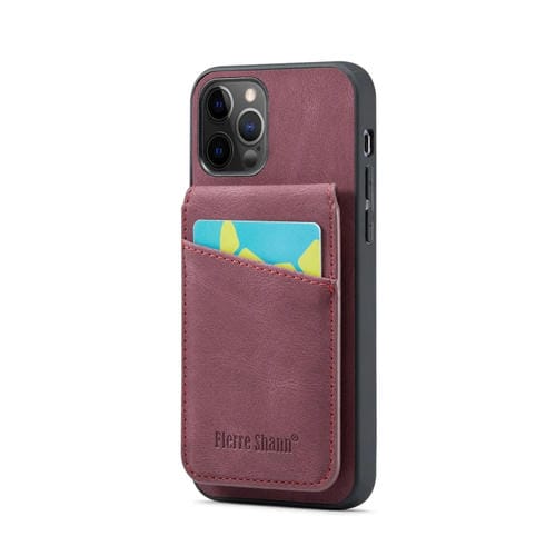 Funda para Teléfono Fierre Shann Crazy Horse Tarjetero Contraportada para iPhone 11 Pro (Rojo Vino)