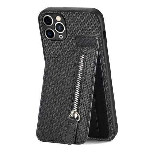 Funda de Teléfono para iPhone 11 Pro Fibra de Carbono con Cremallera Vertical (Negro)